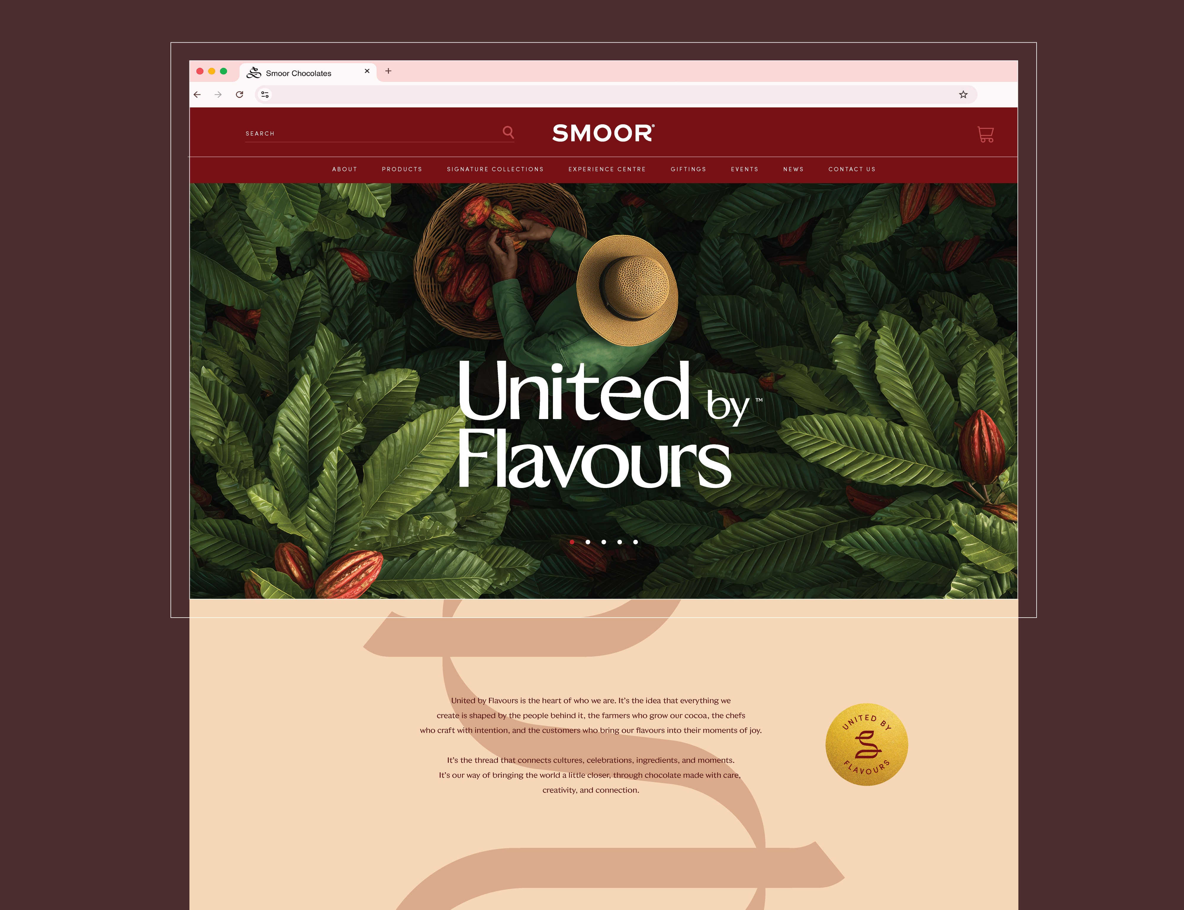 One of the key elements of this evolution was the creation of a new insignia for SMOOR. Designed as a confident monogram, the mark reflects the brand’s artistic spirit and commitment to craft. The form subtly draws inspiration from natural elements like the cocoa pod and leaf, while also evoking the flowing movement of a ribbon, a symbol often associated with celebration, gifting, and joy. This dual meaning allows the mark to carry both origin and emotion in a single gesture.