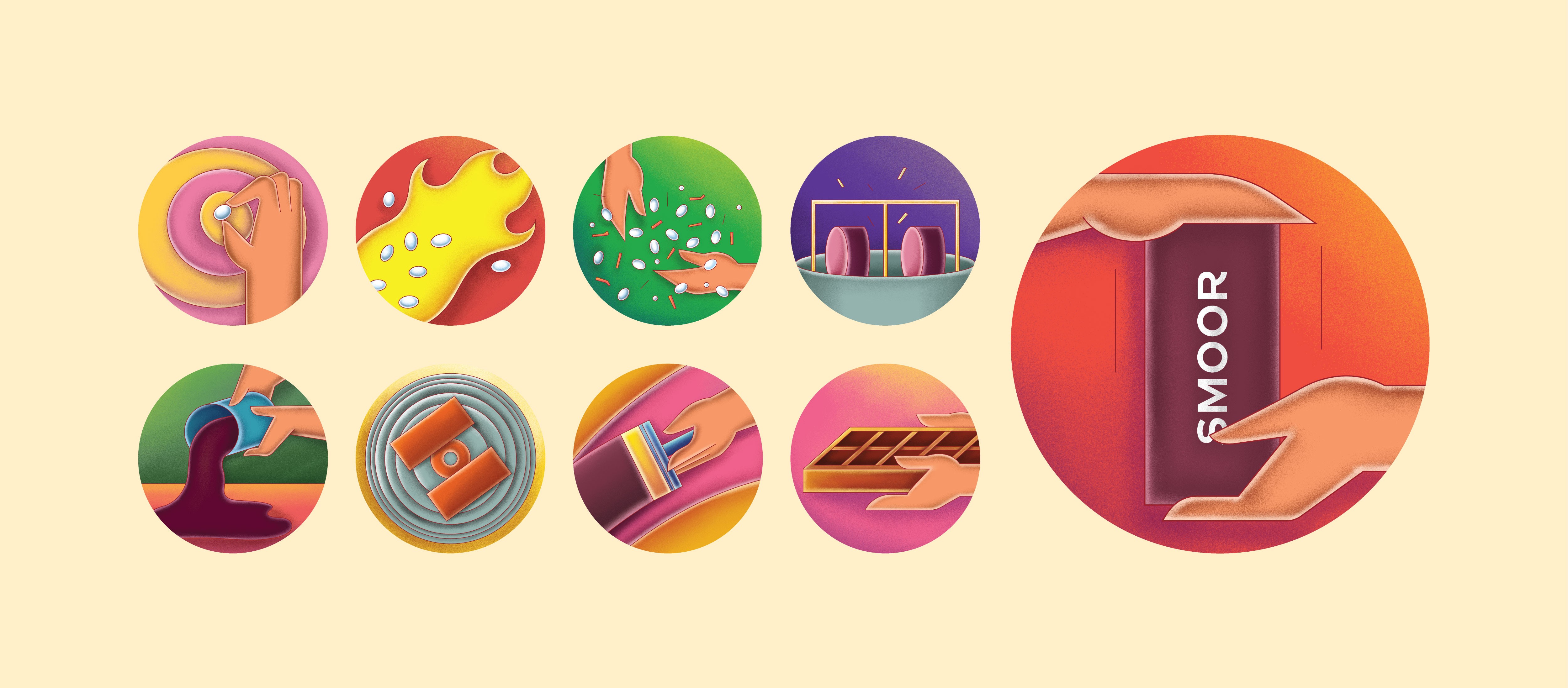 Rather than relying on a single rigid illustration style, we intentionally brought in different artists with distinct visual styles across the space. SMOOR celebrates diversity, creativity, and flavour - so the visual language needed to carry that same spirit.
